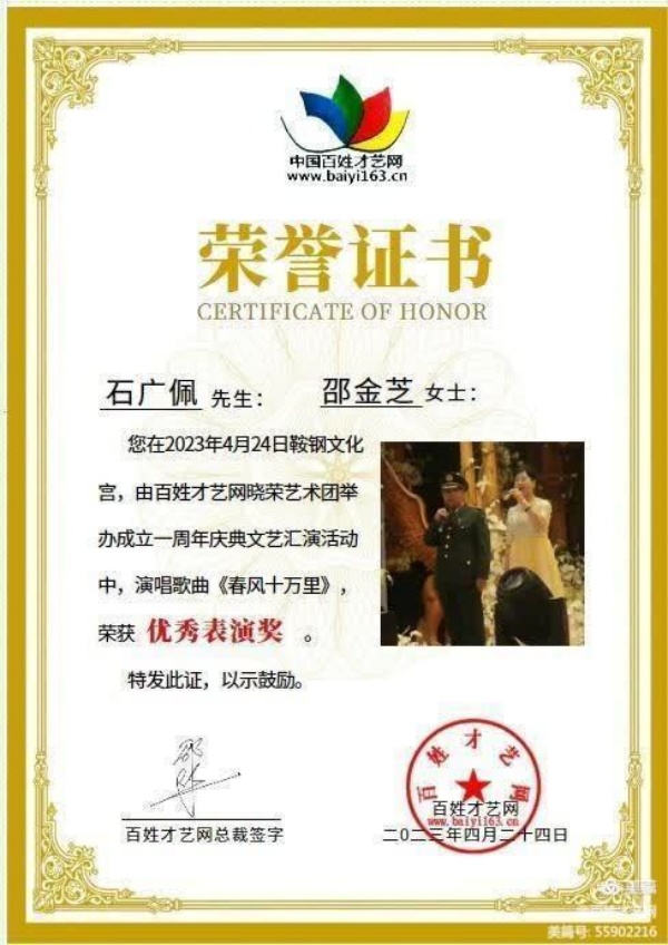 2、本网所有的图片作品中,即使注明“来源:百姓才艺网”及/或标有“百姓才艺网(www.baiyi163.cn)”水印,但并不代表本网对该等图片作品享有许可他人使用的权利;已经与本网签署相关授权使用协议的单位及个人,仅有权在授权范围内使用该等图片中明确注明“百姓才艺网采编XXX摄”或“百姓才艺网采编XXX摄”的图片作品,否则,一切不利后果自行承担。
