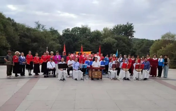 跃于钢城的一带一路艺术团,以舞蹈《祝福祖国》《不忘初心》跳出爱党爱国的赤诚,用舒展的舞姿诠释"永远跟党走"的坚定信念。和平街道关工委"五老"艺术团的老同志们则以诗抒怀、以乐言志:诗朗诵《祖国,一首唱不完的歌》道出对家国的深情告白,器乐合奏《毛主席的话儿记在我们的心坎里》与舞蹈《五星红旗》交织,彰显着"银发艺术家"们对祖国的无限热爱。
