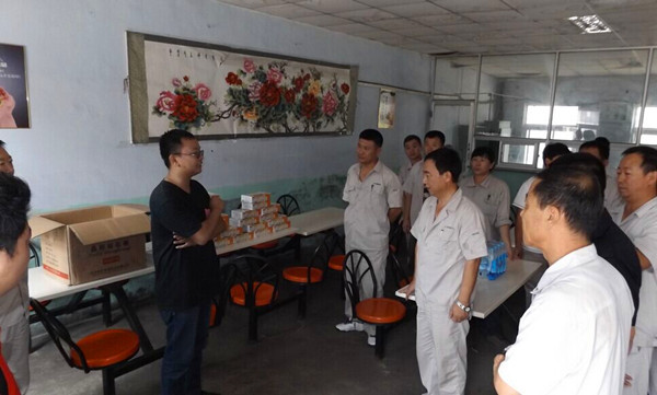 一同前来的海尔鞍山专卖店领导为鞍钢附企氧气厂一线工人每人赠送了一套水碗