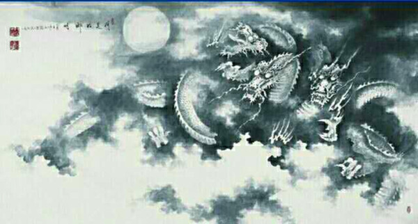 十二、画龙,最亮眼的地方是龙头,其次是龙身的张力,龙爪的抓力和云雾的穿插。